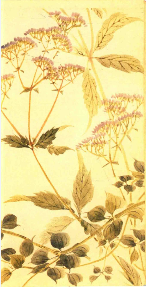 茜草又称地血,能凉血、止血化瘀。它的根部是红色,也是人类最早使用的红色染料原料。金沙江边的傈僳族女人们常常将茜草根经过捣碎、蒸煮,再加入橄榄果、药草等材料,通过滇西荚迷进行酸性固色过滤得到珍贵的染色。这种颜色与正红相比,它略带黄调,更多了几分温柔,近似于燃烧的火焰。紫金龙:横断山的阳光色