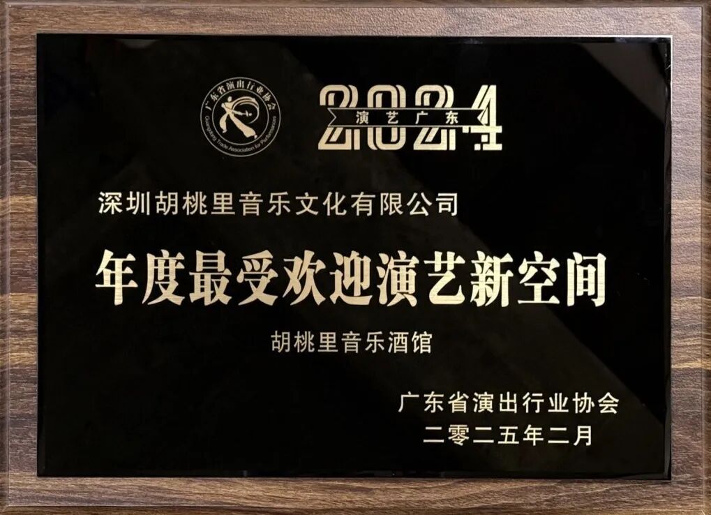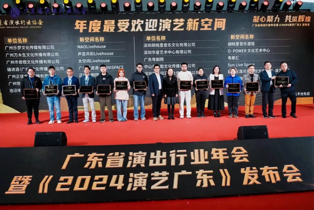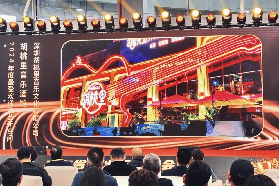 近日,广东省演出行业年会暨《2024演艺广东》发布会在广州圆满举办。在这场演艺领域的年度盛会上,胡桃里音乐酒馆荣获“年度最受欢迎演艺新空间”奖项。