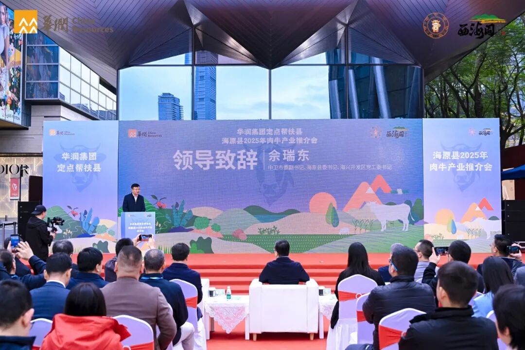佘瑞东书记感谢了华润集团及社会各界对海原的长期支持。他表示,华润集团定点帮扶海原县打赢脱贫攻坚战,助力推进乡村全面振兴,使海原肉牛产业实现了从传统散养到全链条发展的精彩蝶变。海原拥有得天独厚的自然禀赋,是古丝绸之路上的牧业重镇,坚持将发展肉牛产业作为“一号工程”,建立了“八大体系”,着力打造生态环保、特色鲜明、结构合理、链条完整、产业融合、优质高效的肉牛产业集群。