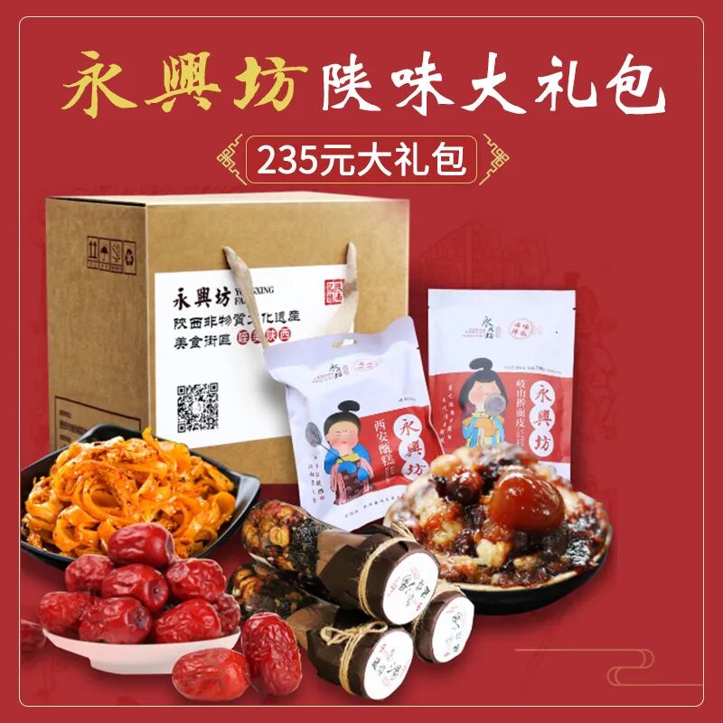 2020.4.15日起,凡在 永兴坊微商城 购任意单品满59元,即可赠送陕西凉皮袋装一份、购满99.00元即送陕北特产大袋狗头枣一份,赠品数量有限、先到先得!
