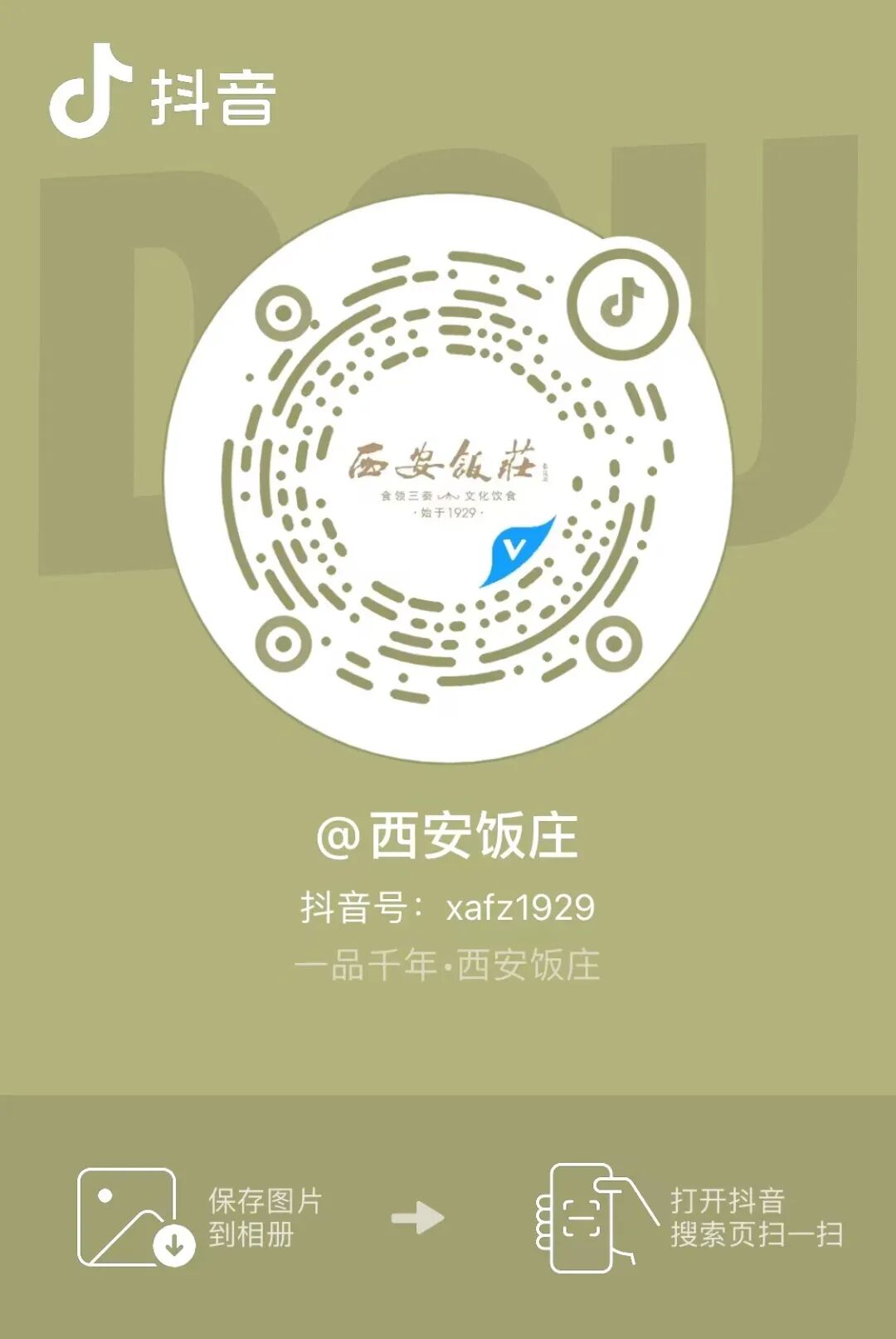 扫码关注西安饭庄抖音账号