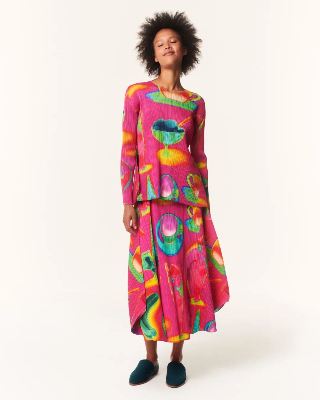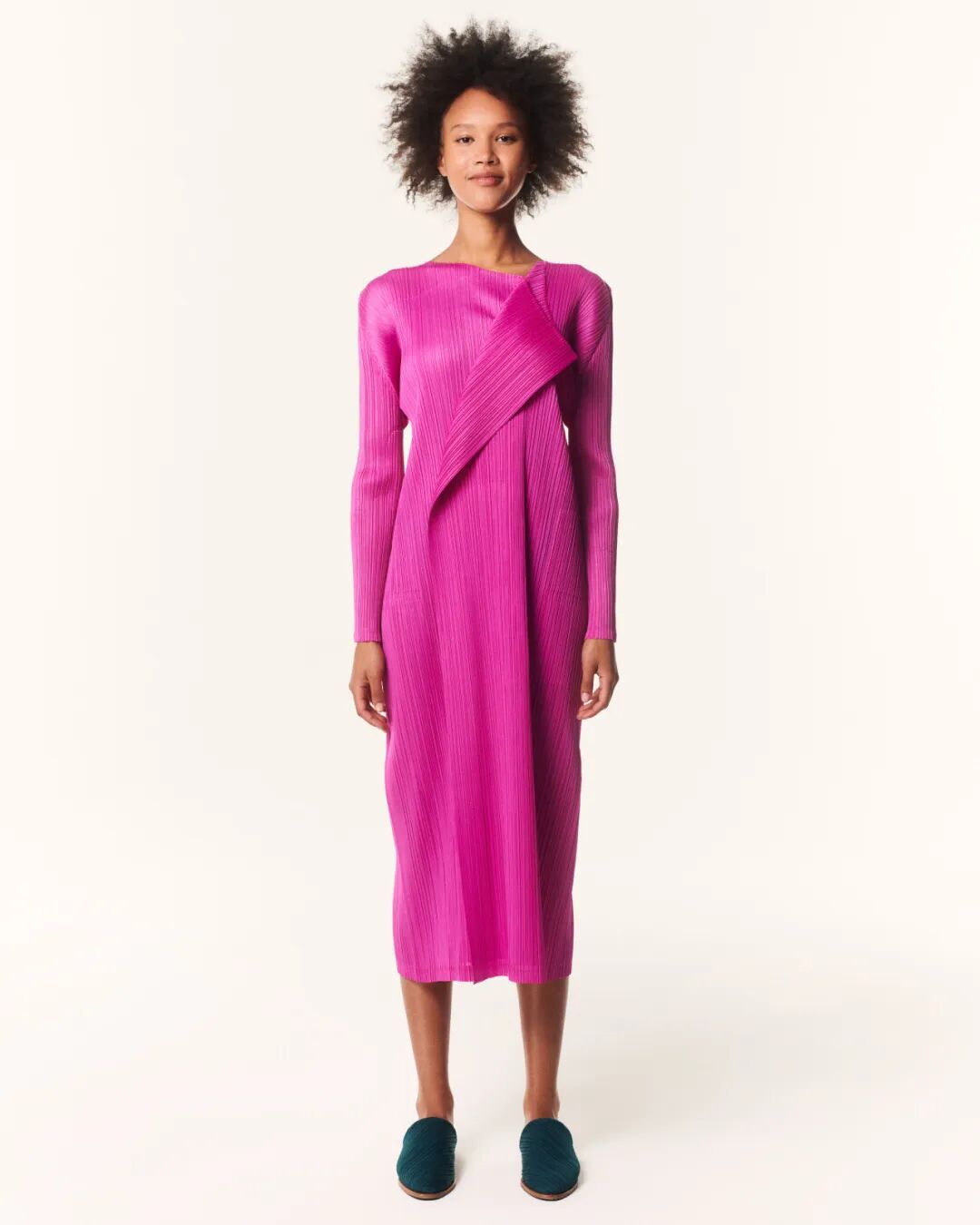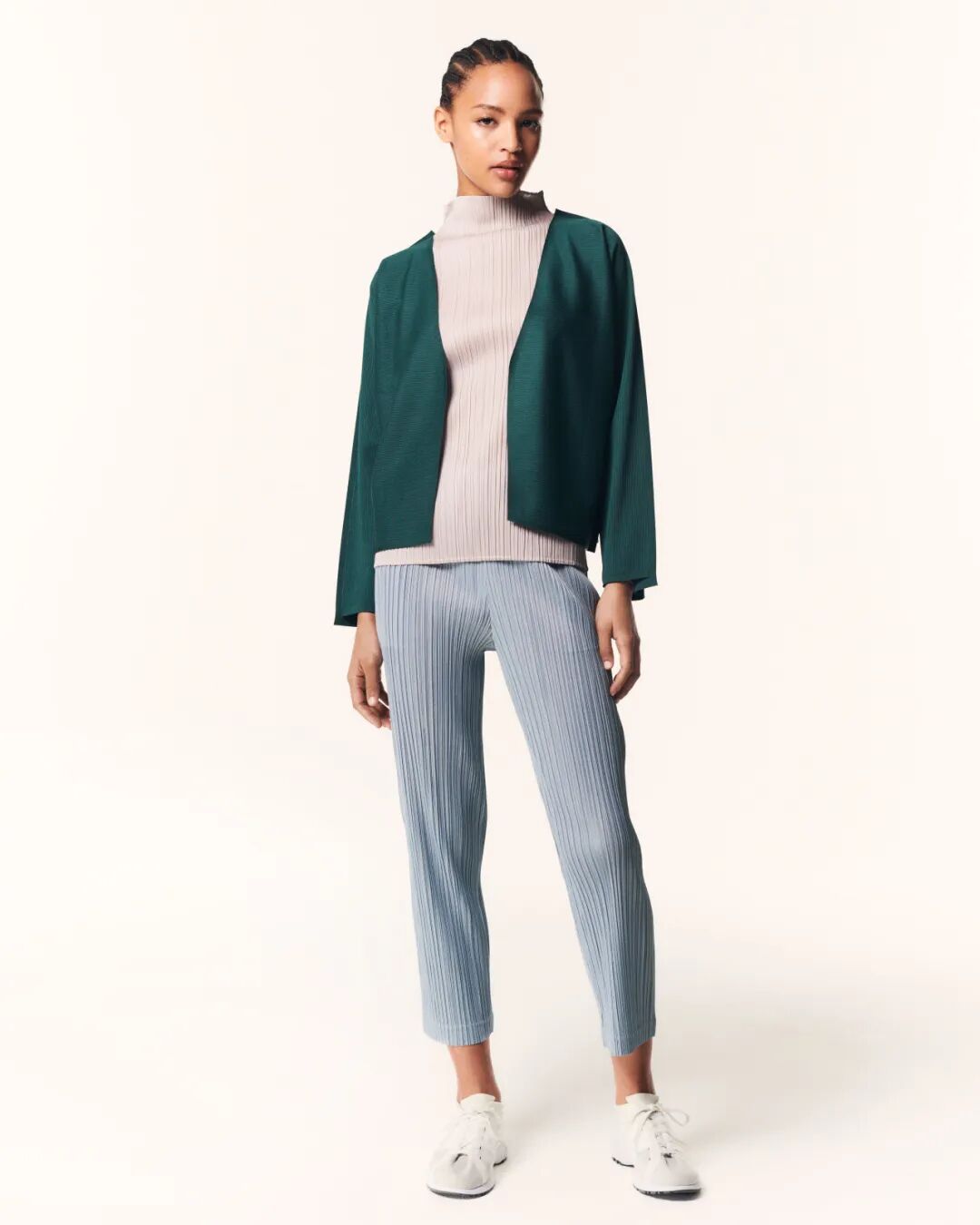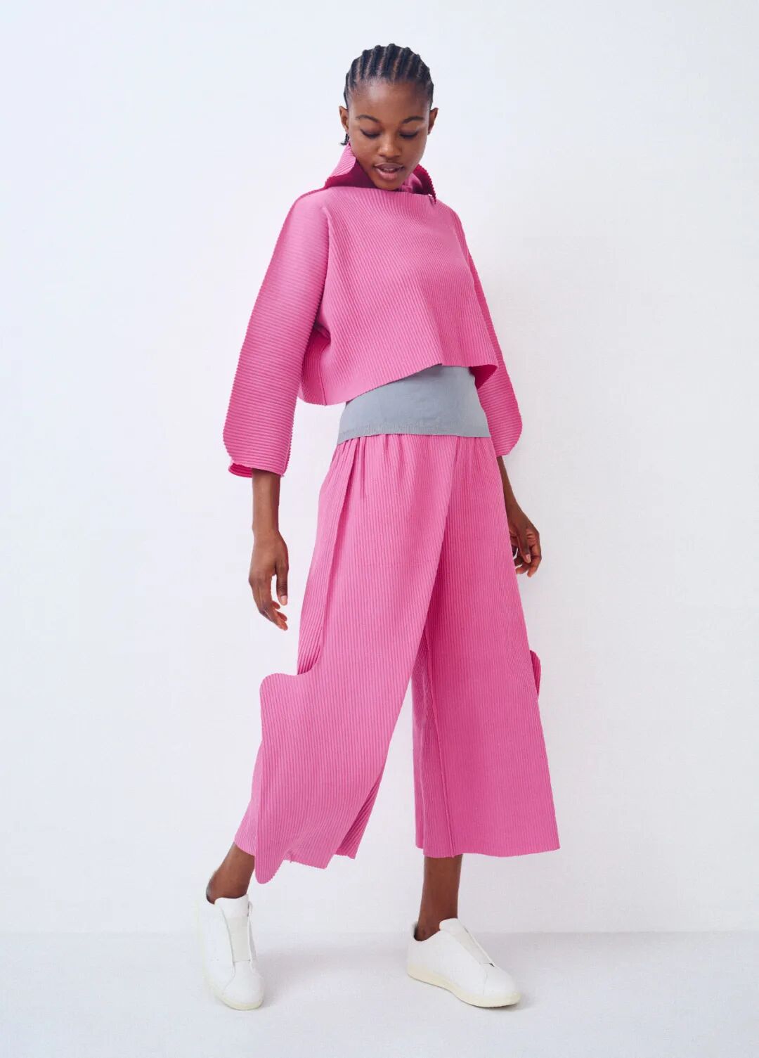 JANUARY通过独特的针织结构展现出规则的褶皱效果,采用再生聚酯纤维,赋予面料轻盈柔软的触感。随着身体的动作,褶皱呈现自然的折叠,展现出流动性与形态变化。灵感来自于热成像相机拍摄的食物温度变化,如冰淇淋和咖啡在加热或冷却中展现的效果。共有两种选择可供选择:暖粉色和冷黑色。外形上采用大量面料构成的喇叭形轮廓,使印花图案更加突出,带来视觉上的层次感。色彩灵感源自热成像图像,通过可视化物体的温度展现色调。明亮的黄色和粉色为整体增添温暖气息。共有五种颜色可供选择,包括冷色系的蓝灰色和蓝绿色。简约的轮廓设计使其更易搭配。拥有A-POC质感,展现出精致的褶皱纹理。全新款式的开襟羊毛衫设计简洁实用,易于搭配。布料接缝处的边缘突出了肩部和侧边的开衩。灵感来自柔软、温暖且富有包裹感的灯笼。整体线条从肩部到下摆干净利落,而袖部则展现了独特的内外翻设计,轮廓柔和圆润。BEYOND系列,”BEYOOON!”一个令人惊喜的形状跃然而出。全新“BEYOND”系列以充满活力的造型为特色,响应了本季的主题“PLAYFUL”。将三角形打造为风琴式结构,易于折叠收纳。采用哑光仿皮材质,类似皮革的细腻纹理,散发出别致的奢华感。颜色有:哑光黑、灰粉色、粉米色,为不同风格的穿搭提供了丰富的选择。采用金属仿皮材质。该系列以浅色调为主,将相似的色调进行搭配。活泼的粉红与红色是搭配春天的完美颜色;蓝色与水蓝色是适合春季穿搭的清新色调,易与米色、浅灰色搭配;浅绿与浅黄色巧妙融入了当下流行的绿色调;浅灰与银色延续经典。通过竖褶和横褶的设计,打造出类似针织的质感。富有趣味性的图案设计,赋予服装独特的活力与创意。将拼图般的冒险感与趣味性融入到服装轮廓中,每件单品都如同拼图的一块,通过竖褶和横褶的设计打造出类似针织的廓形。地址:1F L123
