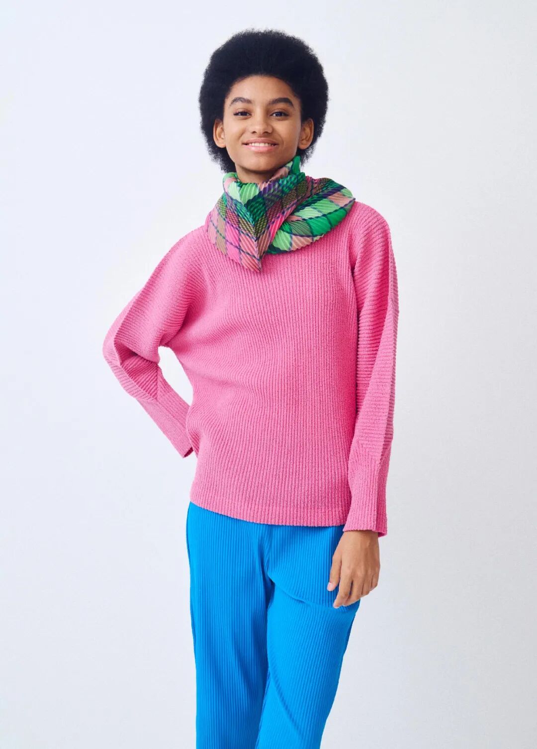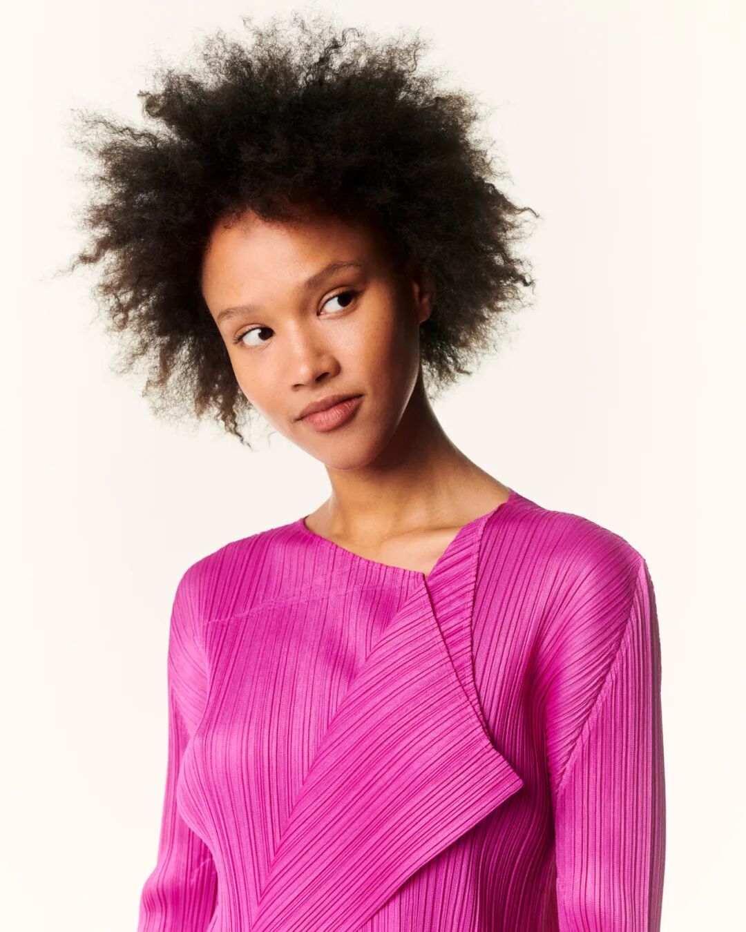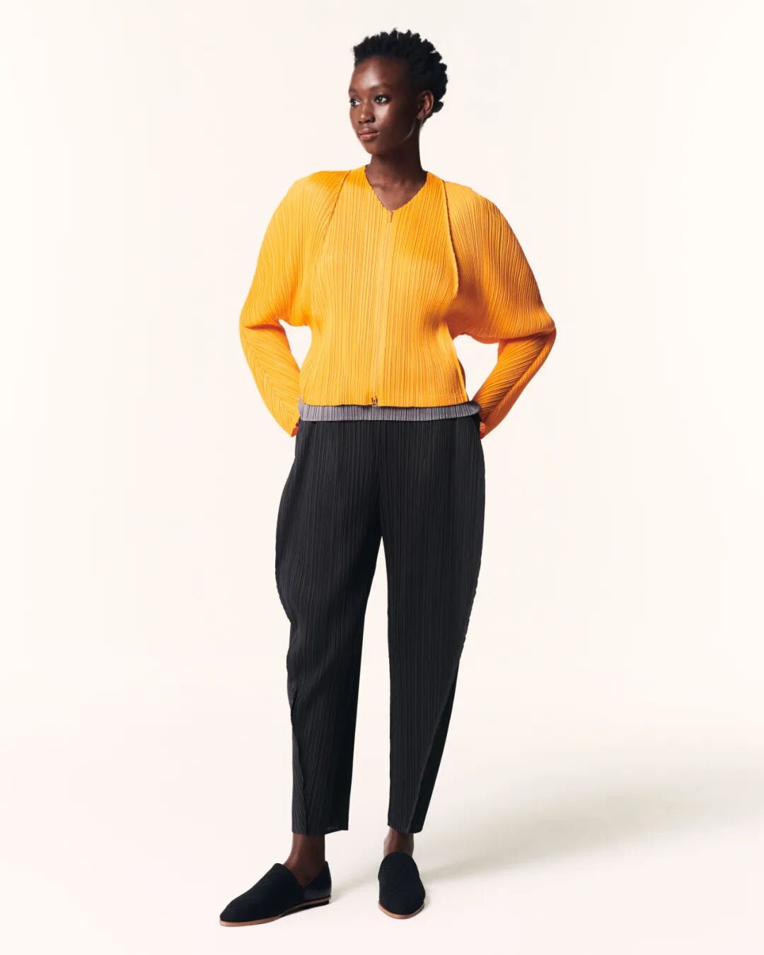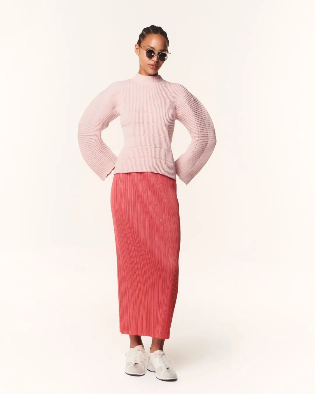 JANUARY通过独特的针织结构展现出规则的褶皱效果,采用再生聚酯纤维,赋予面料轻盈柔软的触感。随着身体的动作,褶皱呈现自然的折叠,展现出流动性与形态变化。灵感来自于热成像相机拍摄的食物温度变化,如冰淇淋和咖啡在加热或冷却中展现的效果。共有两种选择可供选择:暖粉色和冷黑色。外形上采用大量面料构成的喇叭形轮廓,使印花图案更加突出,带来视觉上的层次感。色彩灵感源自热成像图像,通过可视化物体的温度展现色调。明亮的黄色和粉色为整体增添温暖气息。共有五种颜色可供选择,包括冷色系的蓝灰色和蓝绿色。简约的轮廓设计使其更易搭配。拥有A-POC质感,展现出精致的褶皱纹理。全新款式的开襟羊毛衫设计简洁实用,易于搭配。布料接缝处的边缘突出了肩部和侧边的开衩。灵感来自柔软、温暖且富有包裹感的灯笼。整体线条从肩部到下摆干净利落,而袖部则展现了独特的内外翻设计,轮廓柔和圆润。BEYOND系列,”BEYOOON!”一个令人惊喜的形状跃然而出。全新“BEYOND”系列以充满活力的造型为特色,响应了本季的主题“PLAYFUL”。将三角形打造为风琴式结构,易于折叠收纳。采用哑光仿皮材质,类似皮革的细腻纹理,散发出别致的奢华感。颜色有:哑光黑、灰粉色、粉米色,为不同风格的穿搭提供了丰富的选择。采用金属仿皮材质。该系列以浅色调为主,将相似的色调进行搭配。活泼的粉红与红色是搭配春天的完美颜色;蓝色与水蓝色是适合春季穿搭的清新色调,易与米色、浅灰色搭配;浅绿与浅黄色巧妙融入了当下流行的绿色调;浅灰与银色延续经典。通过竖褶和横褶的设计,打造出类似针织的质感。富有趣味性的图案设计,赋予服装独特的活力与创意。将拼图般的冒险感与趣味性融入到服装轮廓中,每件单品都如同拼图的一块,通过竖褶和横褶的设计打造出类似针织的廓形。地址:1F L123