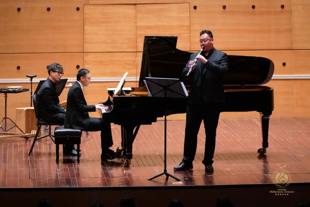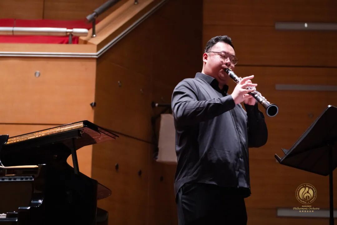 随后,单簧管副首席孙寅登场,与郝博同台演绎四首二重奏作品,这已是他们第二次在春节期间为市民带来 “新春欢乐送” 普及音乐会。当熟悉的作品响起,《如愿》的悠扬曲调率先触动观众的心弦,紧接着《灯火里的中国》的旋律在音乐厅中流淌。现场,观众们打开手机电筒,点点微光汇聚,共同打造出属于今晚的 “灯火里的中国”。在这温馨而浪漫的氛围里,大家沉浸其中,内心的情感被充分唤起,与台上的演奏者们一同沉浸在迎接乙巳蛇年到来的喜悦之中。