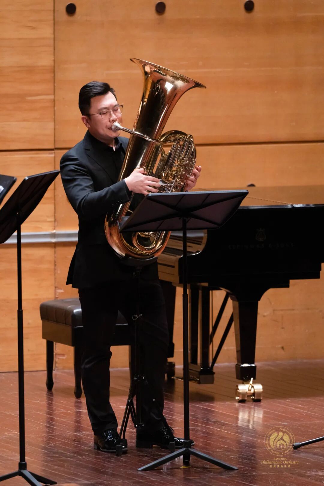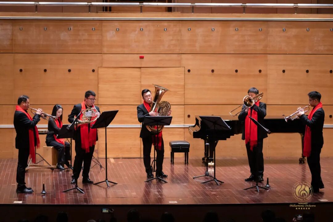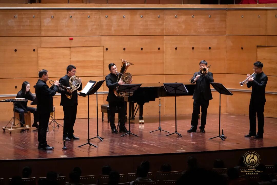 最后登台的是杭州爱乐乐团的经典组合,由圆号副首席昝玥涛、小号演奏家左罗和黄培时、长号首席韩斐、大号演奏家戴展鸿和打击乐首席汪晓组成的室内乐团,凭借多年合作培养出的默契,为观众带来了精彩的音乐盛宴。