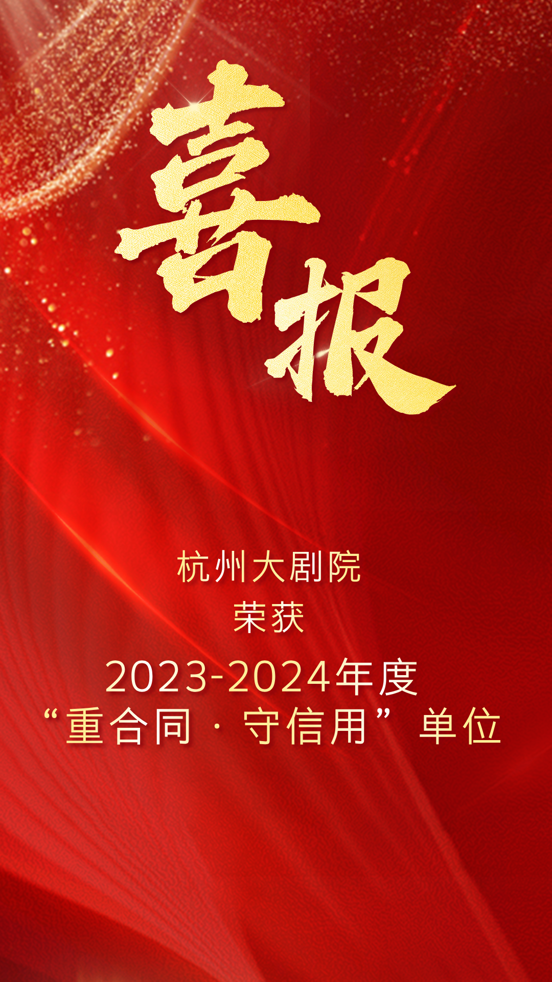 杭州大剧院凭借在演出行业中的卓越表现和诚信经营,在第二十九届长三角演出交易会上荣获2023-2024年度“重合同·守信用”单位的称号。近年来,杭州大剧院多次获得该称号,这不仅是对杭州大剧院长期以来持续深化“服务品质是生命线”工作理念的肯定,更是对我们在演出市场中良好信誉的认可。