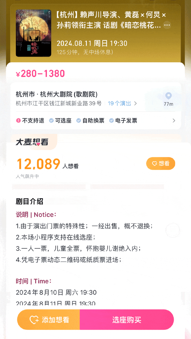 8月10-11日,赖声川导演,黄磊×何炅×孙莉领衔主演,话剧《暗恋桃花源》经典版开启火热夏日观剧潮,2天演出观众人数超三千人次。开票几分钟就全价位售罄,是真正意义上的“一票难求”。