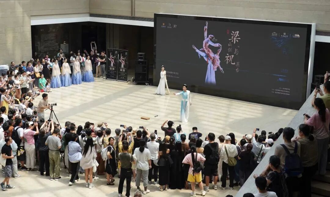 演出前一天,北京舞蹈学院的舞者变身梁山伯与祝英台,“闪现”曾经同窗共读的万松书院。随后,主创一行又现身浙江美术馆,继续这一场“穿越千年的爱恋”艺术快闪。