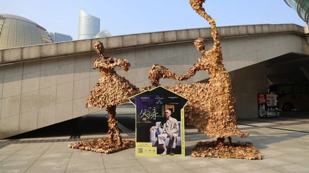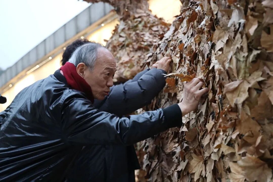 12月25日,《父亲》开演前,中国美术学院联合杭州电视台生活频道、杭州大剧院,以“生活+艺术”的方式,将秋叶艺术装置,“舞”进杭州大剧院。金士杰和田水两位老师作为此次开展嘉宾写下了第一份祝福。在这金色的秋叶中,我们即将迎来充满希望的2025年。