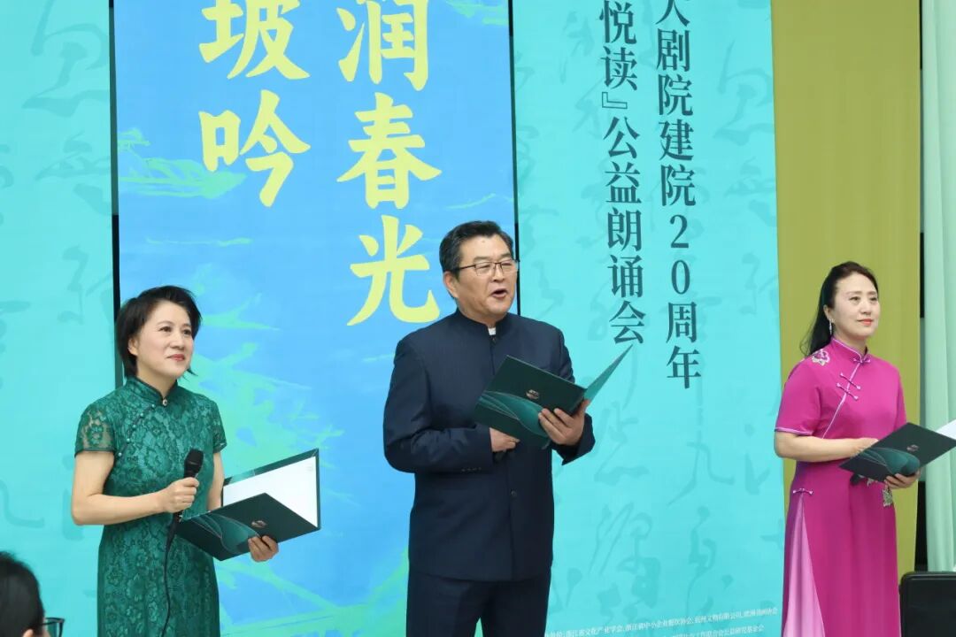 4月20日,在第29个世界读书日来临之际,杭州大剧院携手杭州市朗诵协会、中国民族书画院杭州分院,共同举办了“朗润春光·东坡吟”杭州大剧院建院20周年“艺起悦读”公益朗诵会。