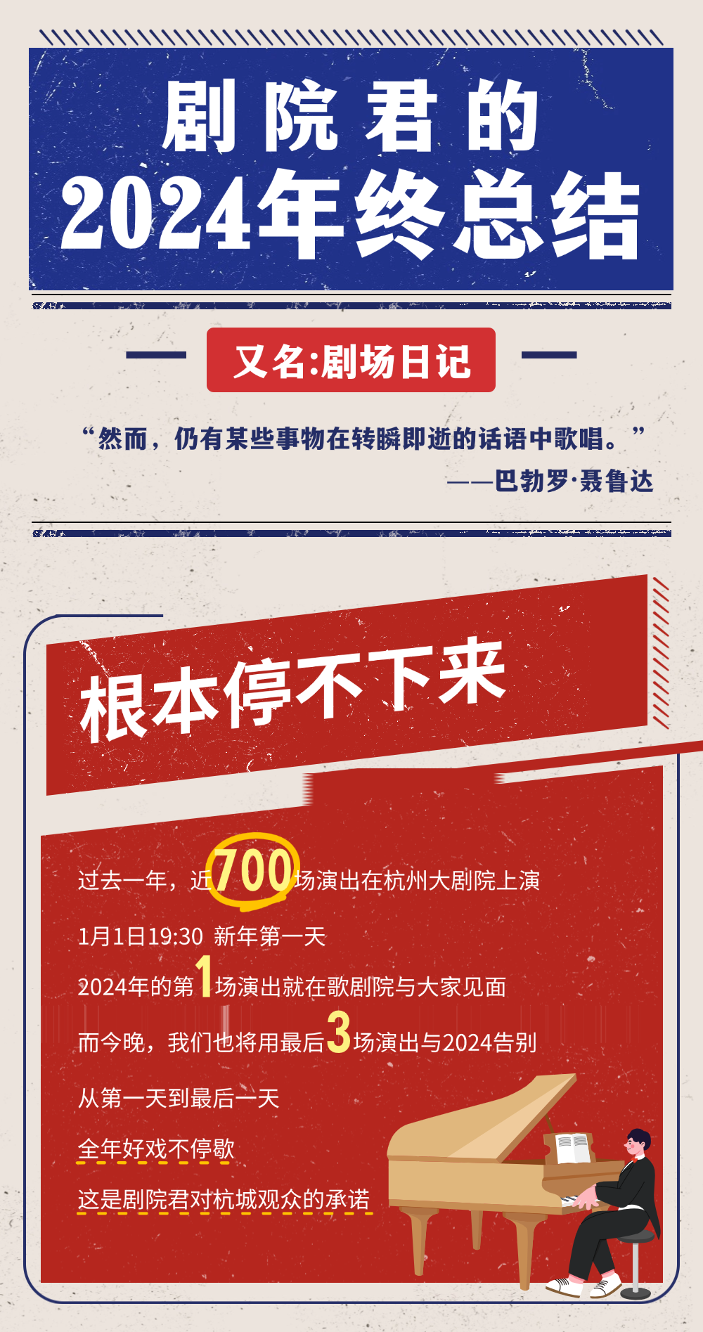 2024即将迎来最后一个夜晚,杭州大剧院依旧陪你度过,在艺术的陪伴下,我们向过去一年所有的遗憾告别,迎接充满闪光、快乐、充满希望的2025吧!详情请点击。