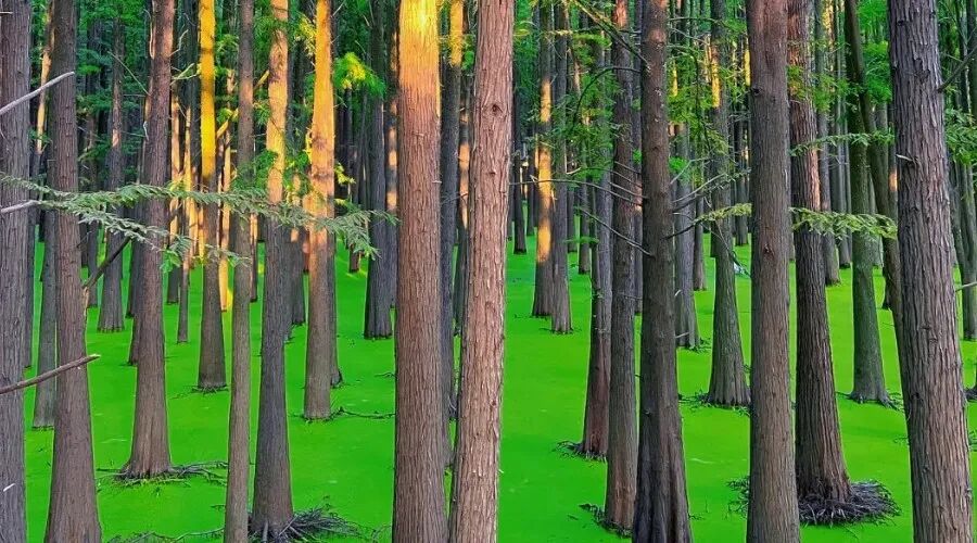 树在水中长,船在林中游;鸟在枝上鸣,人在画中行。正是游览青山湖的乐趣~