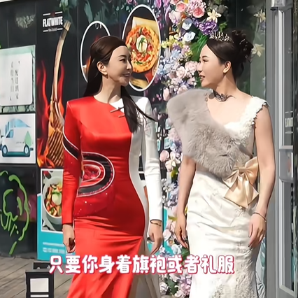 女性顾客身穿旗袍/礼服到店