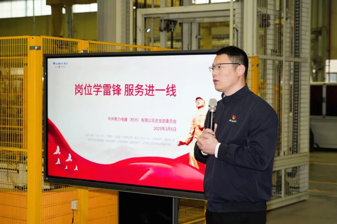 2025年3月5日是第62个“学雷锋纪念日”,也是第26个“中国青年志愿者服务日”。为让雷锋精神在新时代持续闪耀,强化党员社会责任意识,中共格力电器(杭州)有限公司总支部组织全体党员开展“岗位学雷锋 服务进一线”主题党日活动,深入贯彻党的二十届三中全会精神和习总书记对深入开展学雷锋活动重要指示精神,用“身边事”教育“身边人”,将“服务人民、助人为乐”的新时代雷锋精神传递给全体党员,让雷锋精神在新时代绽放耀眼光芒。
