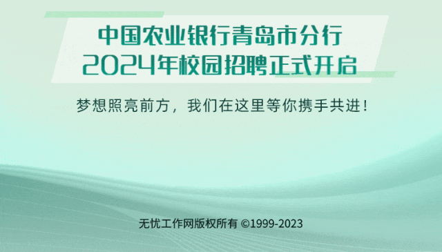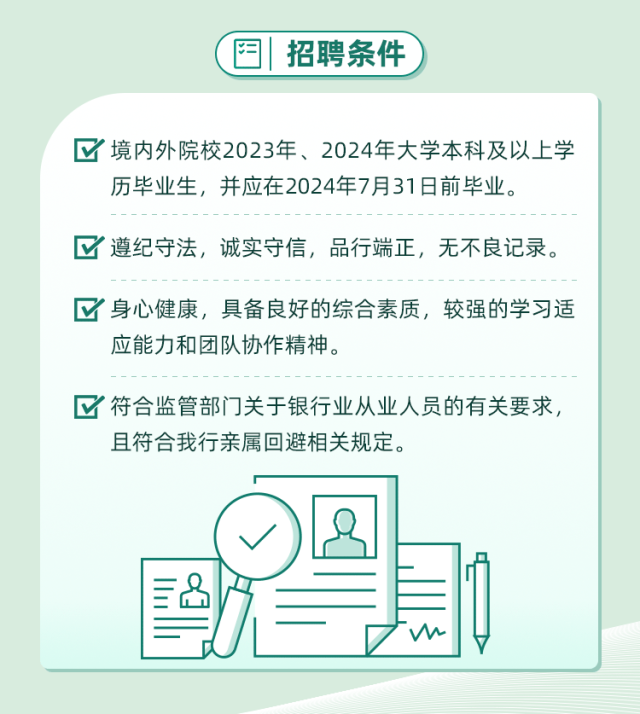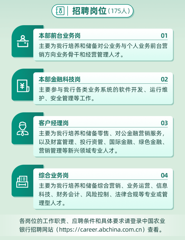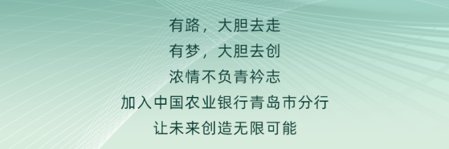 文章内容来源于公众号:中国农业银行人才招聘,点此可查看原文,内容版权归相关企业所有,本网站仅供交流学习。若涉及版权问题或存在侵权情况,请及时与我们联系,我们将第一时间进行删除处理。