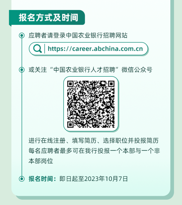 本文内容来源于公众号: 中国农业银行人才招聘 ,请扫码查看原文。