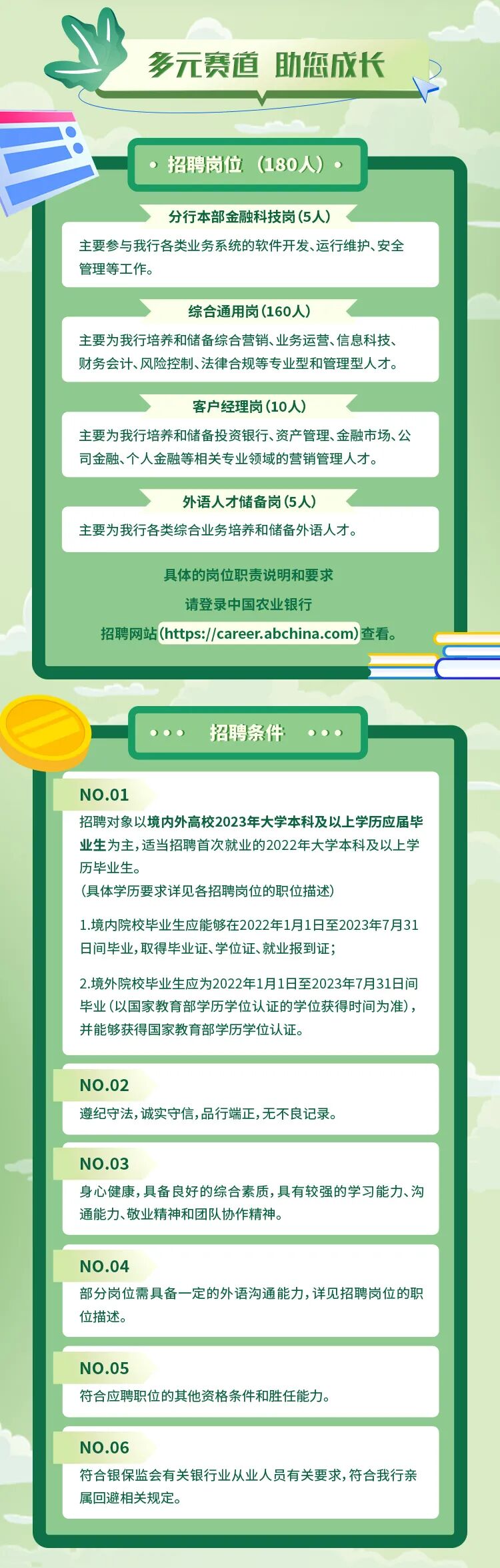 文章内容来源于公众号:中国农业银行人才招聘,点此可查看原文,内容版权归相关企业所有,本网站仅供交流学习。若涉及版权问题或存在侵权情况,请及时与我们联系,我们将第一时间进行删除处理。