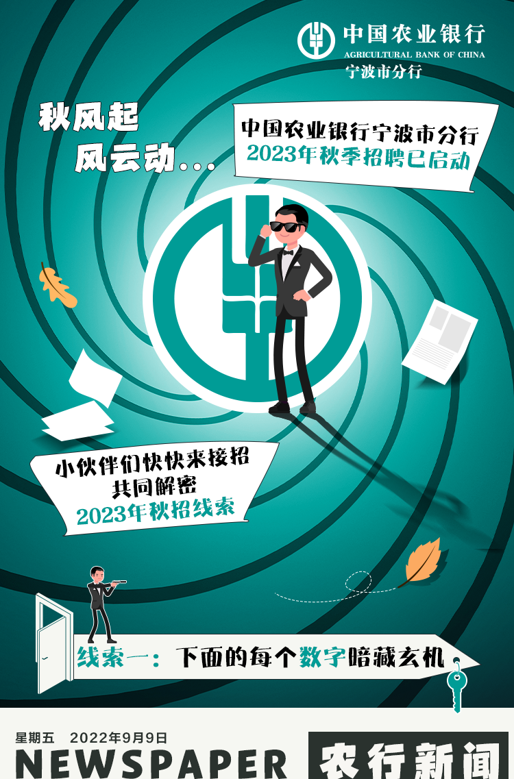 文章内容来源于公众号:中国农业银行人才招聘,点此可查看原文,内容版权归相关企业所有,本网站仅供交流学习。若涉及版权问题或存在侵权情况,请及时与我们联系,我们将第一时间进行删除处理。