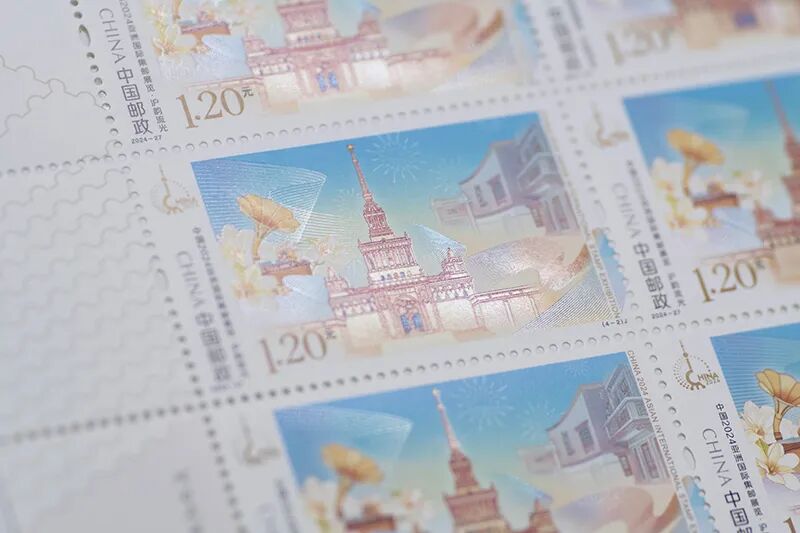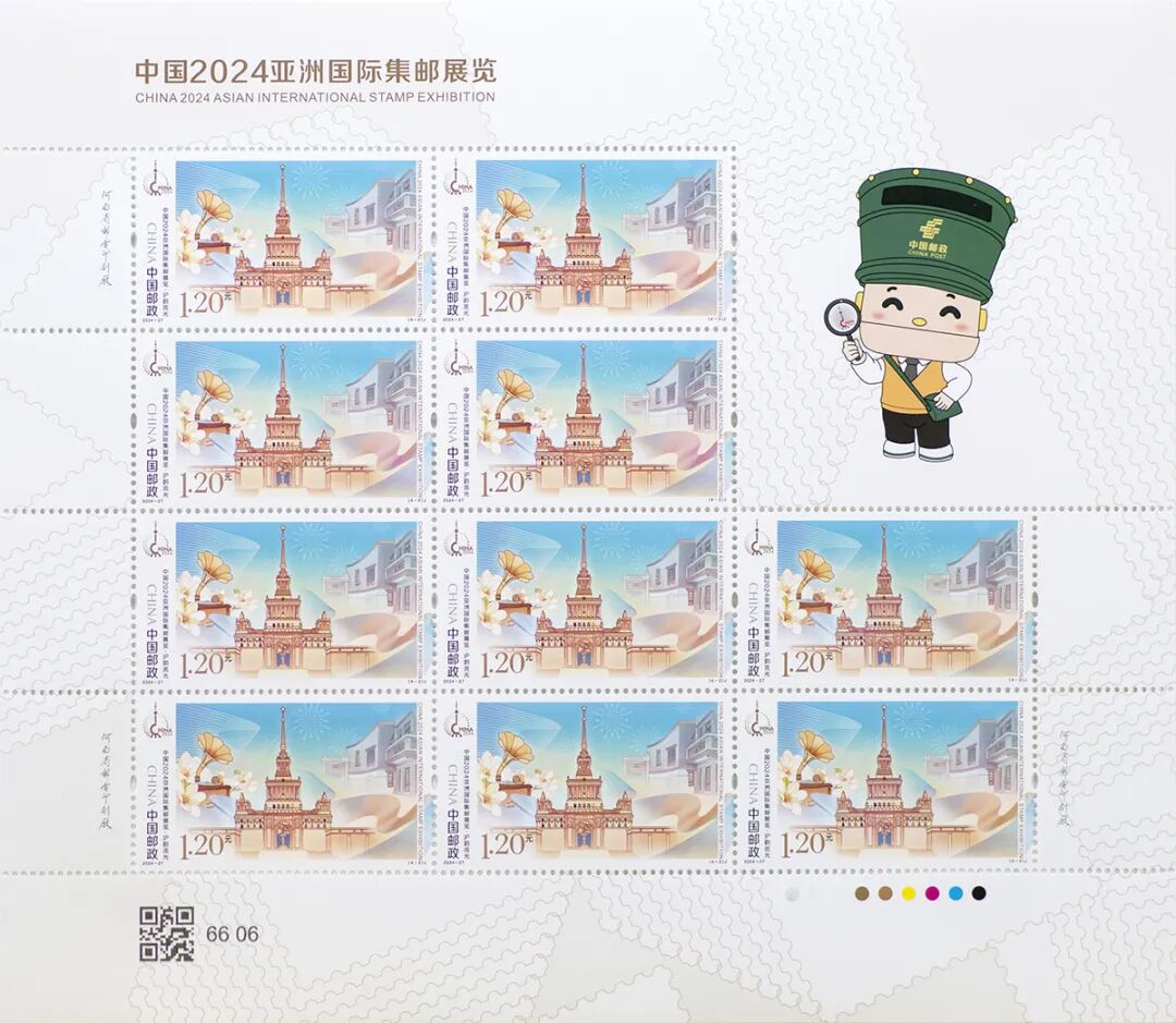 为配合中国2024 亚洲国际集邮展览活动,另制作《中国2024亚洲国际集邮展览》特殊工艺小型张1枚。面值:6元。计划发行数量:11万枚。小型张结合芯片技术,用带NFC 功能的手机贴近东方明珠广播电视塔位置,可点亮“明珠”并读取芯片信息。