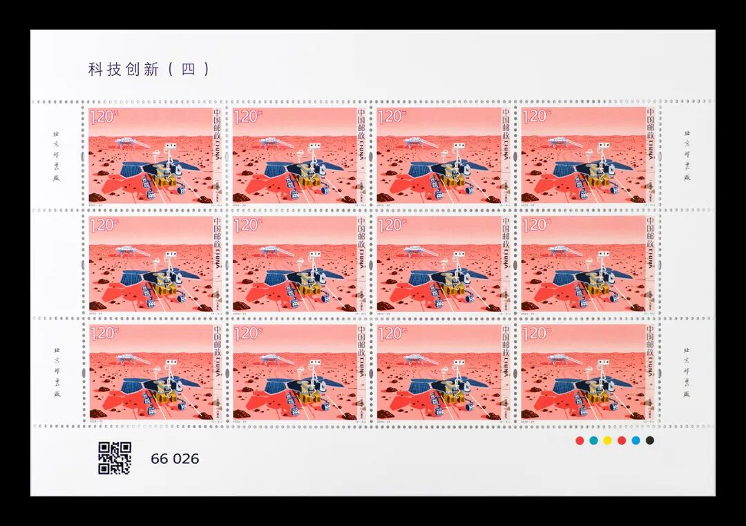 中国邮政定于2023年11月1日发行《科技创新(四)》纪念邮票一套5枚,邮票图案名称分别为人工合成淀粉、多年生稻、“祝融号”火星车、夸父一号、高海拔宇宙线观测站。全套邮票面值6.60元。邮票计划发行数量为700万套。