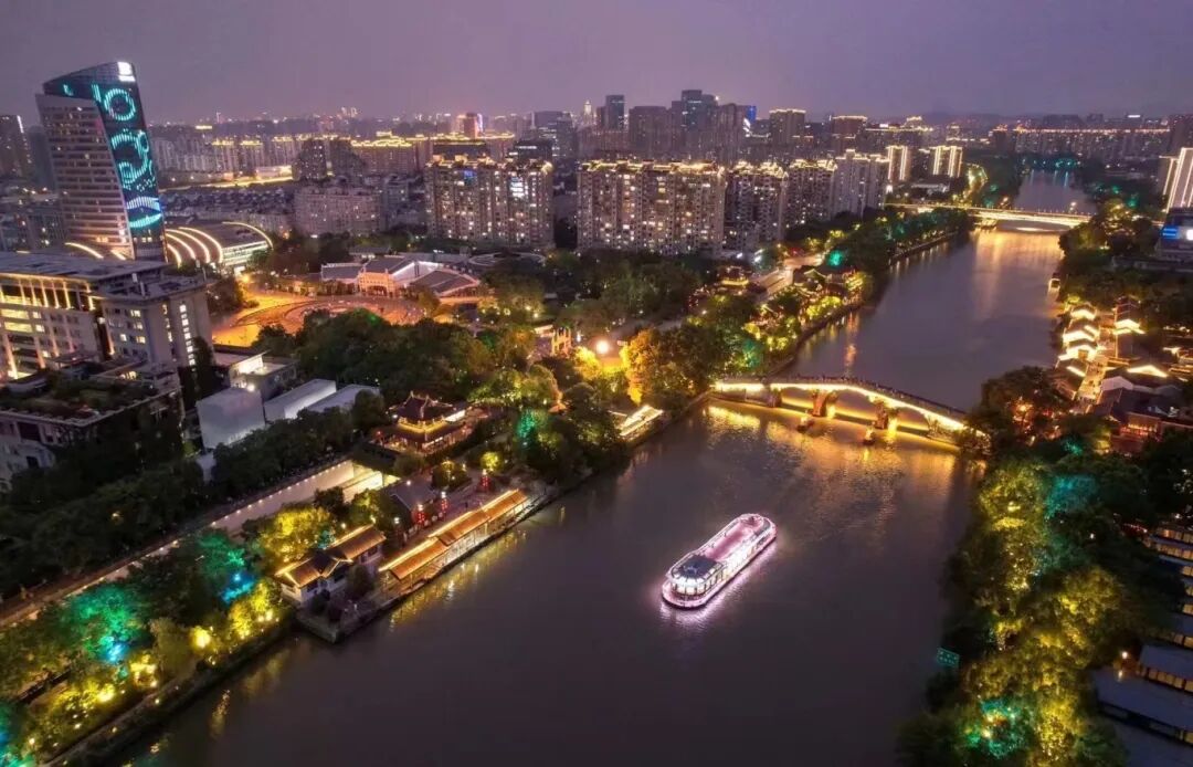 线路简介:搭乘豪华游船,登甲板尽揽运河迷人夜景。游客漫步甲板,或定格美景于镜头,或静享如梦夜色。倚栏而坐,或沉浸于舒适座椅,皆被这份绝美风光深深吸引,沉醉不已。