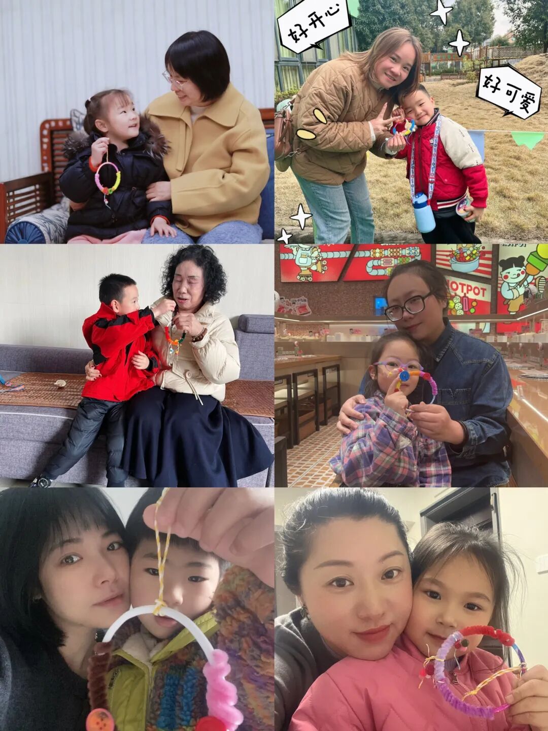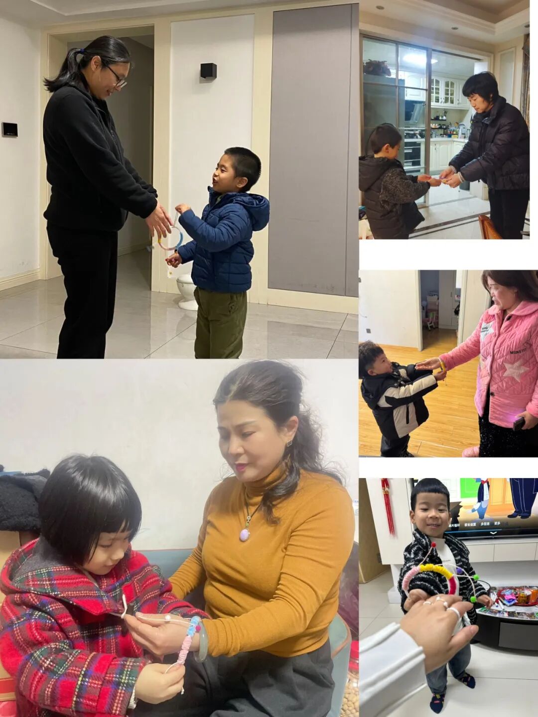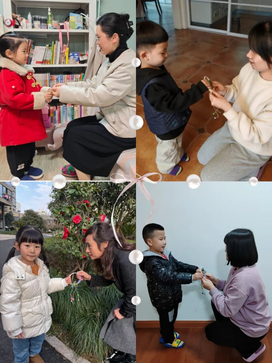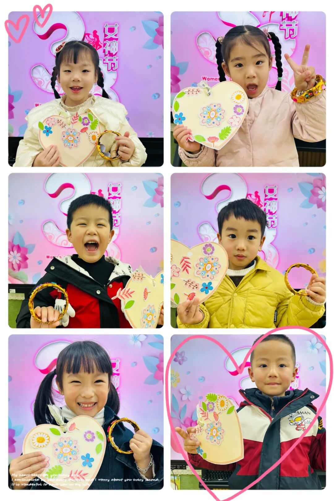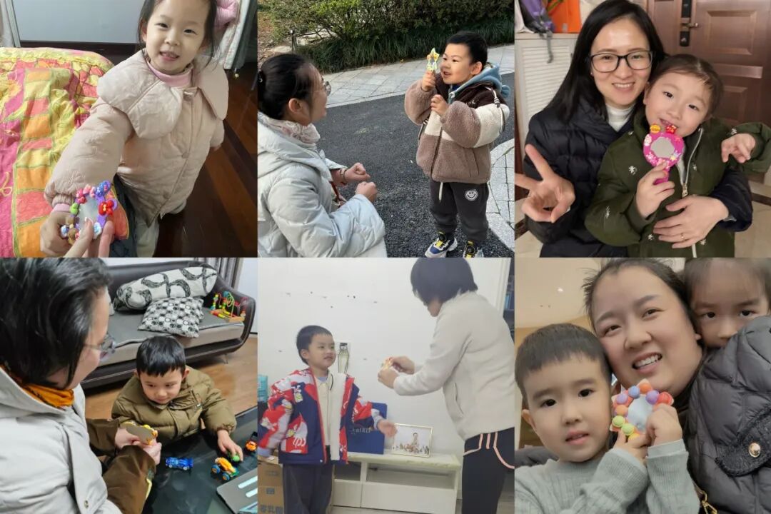小朋友们用金箔纸制作出金戒指和金手镯,这些精致的 “首饰” 饱含着孩子们的心意。还有的小朋友们则用爱编织了“心愿环”,一个个彩色的“心愿环”拥有神奇的魔法,可以为女神们实现一个小心愿。看,他们送出礼物,还与这些 “女神” 们亲密合影,定格美好瞬间。
