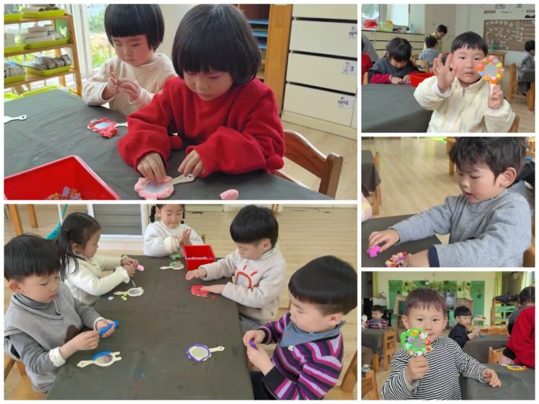 萌娃们化身手工小达人,精心制作手工 DIY 镜子作为送给女神的礼物。他们专注地涂抹色彩、粘贴装饰,每一面镜子都承载着对女性长辈的深深爱意。制作完成后,孩子们迫不及待地将礼物送给妈妈等,看到长辈们惊喜的笑容,孩子们也收获了满满的幸福。