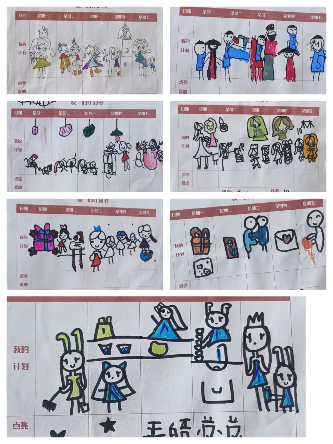 大班教室里热闹非凡,孩子们正在精心制定 “服务女神的一周计划”。“我要帮妈妈洗碗,让她的手不用泡在水里那么久。”“我要给奶奶捶背,奶奶每天照顾我太辛苦了。” 孩子们你一言我一语,认真地讨论着自己的计划。不一会儿,一张张详细的计划便诞生了,从周一到周日,每天都安排得满满当当。回家孩子们一个个变身 “贴心小棉袄”,为家里的女神送上贴心的服务。家长们纷纷拍照记录这些温馨瞬间,享受着这份爱,甜在心里。