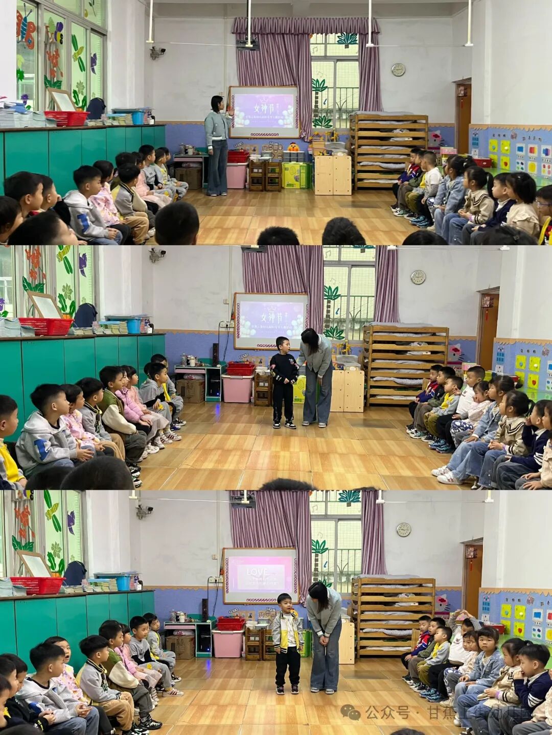 节日在老师与孩子们的互动中拉开帷幕,通过有趣视频、PPT、绘本故事等活动,引导孩子们了解“三八”妇女节的由来和意义。