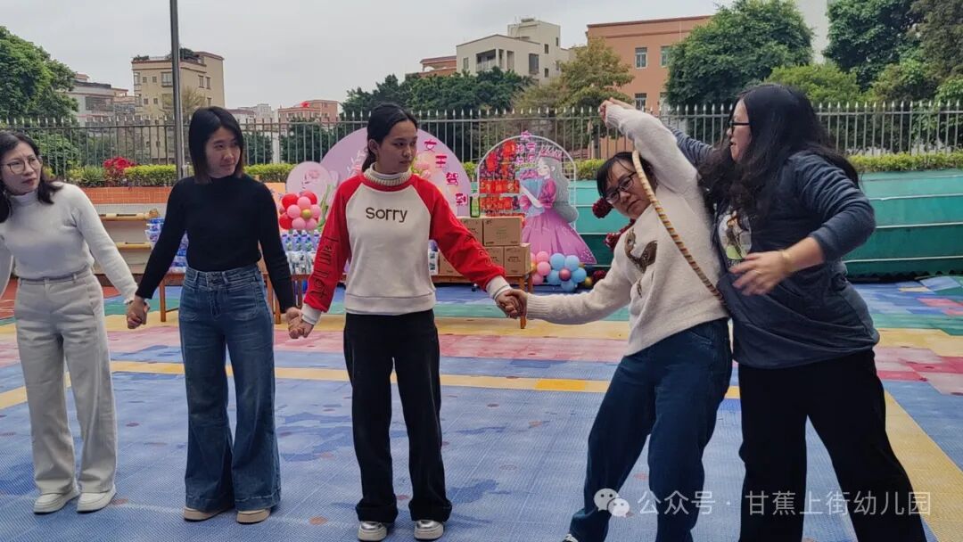 在三八女神节到来之前,幼儿园为老师们准备了丰富的礼品和趣味十足的师幼互动小游戏和教师团队作战游戏,在游戏中,大家尽情欢笑,有趣的团建游戏活动,为我们的节日增添了串串欢声笑语!