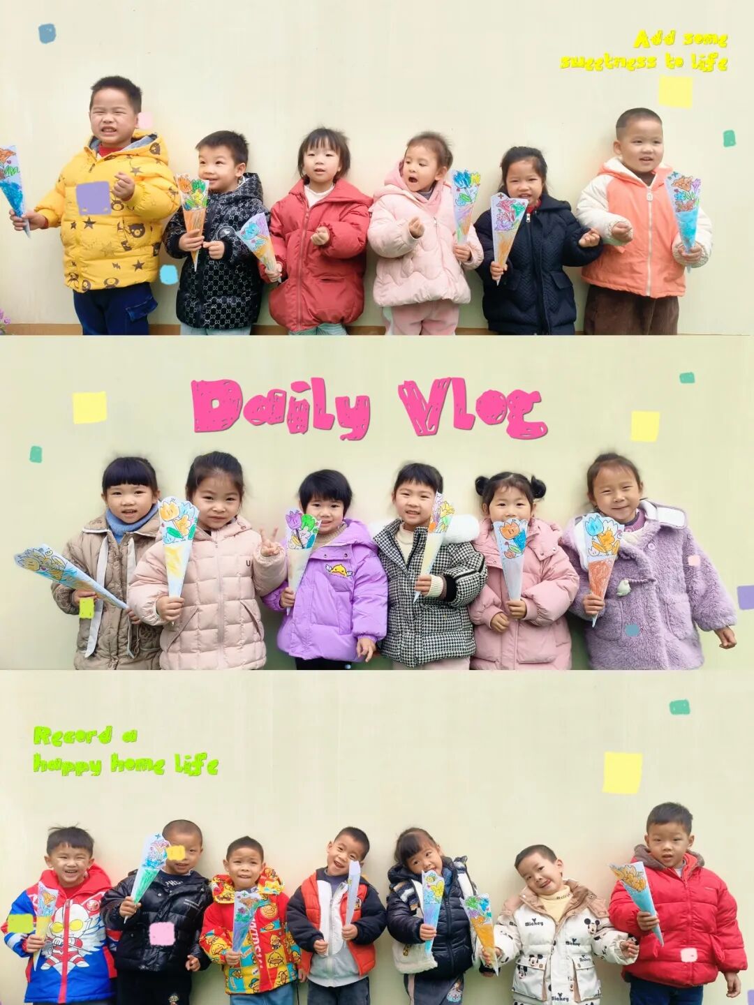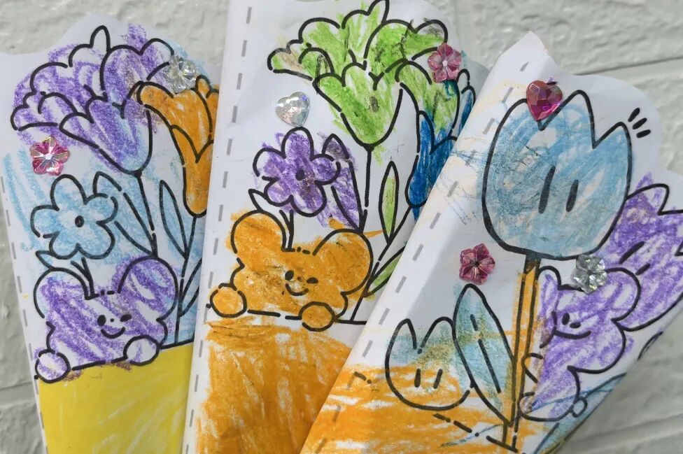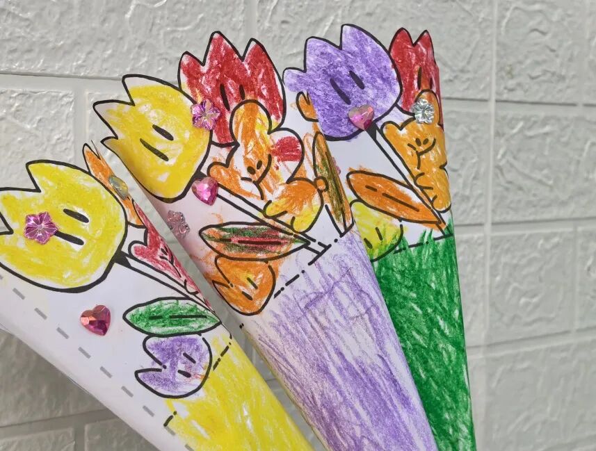 亲手制作超有爱的花束,不仅仅是节日的装饰,更是小朋友们满满爱意的表达。