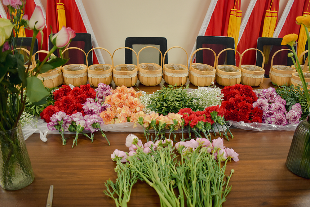 在插花的过程中,大家不仅享受到了创作的乐趣,还增进了彼此之间的交流与了解。活动结束后,大家手捧着亲手制作的花篮,脸上洋溢着灿烂美丽的笑容,随着咔嚓一声,快门响起,美丽的瞬间被永久定格。