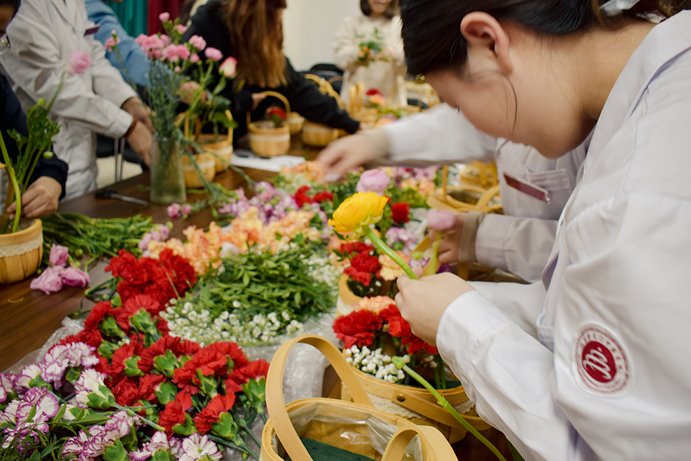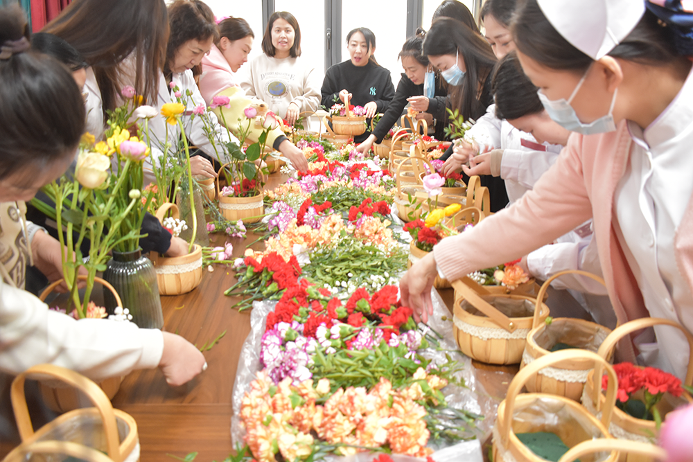 在插花的过程中,大家不仅享受到了创作的乐趣,还增进了彼此之间的交流与了解。活动结束后,大家手捧着亲手制作的花篮,脸上洋溢着灿烂美丽的笑容,随着咔嚓一声,快门响起,美丽的瞬间被永久定格。