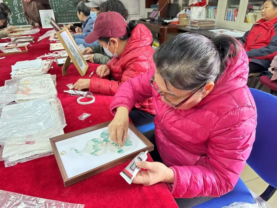 活动现场,带领女性居民制作织锦珍珠画,提高动手能力与审美能力的同时,让参与者了解中国传统织锦工艺发展,感受蕴藏在各式纹饰图案背后蕴藏的传统文化。