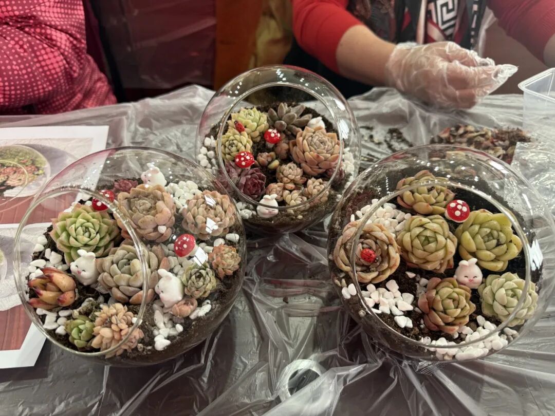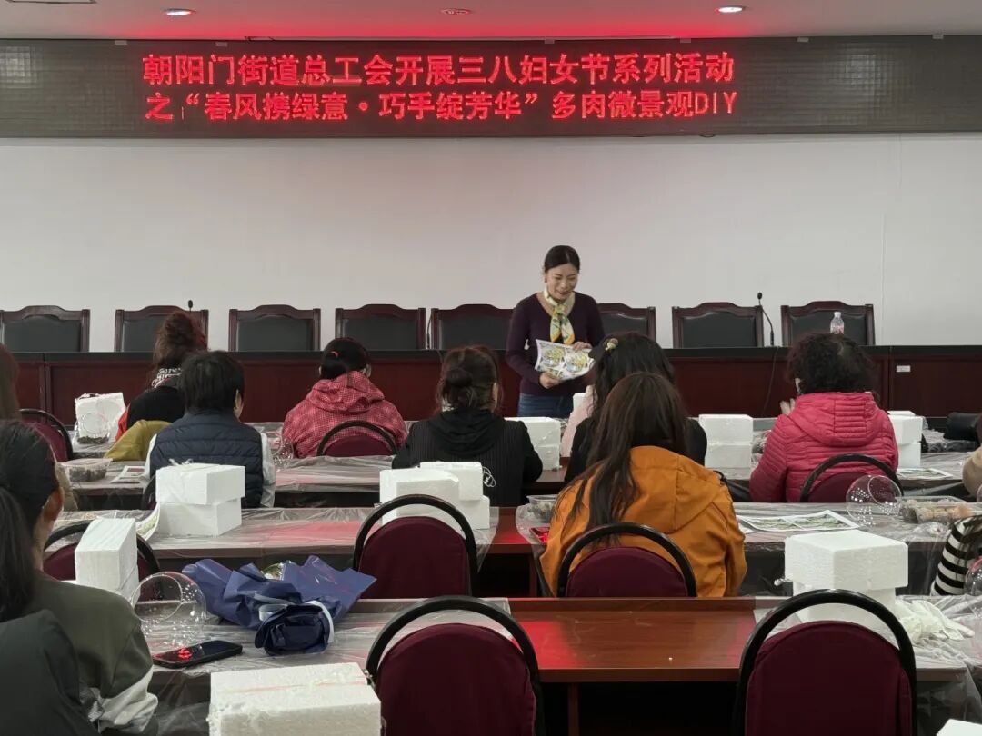 活动现场,街道妇联、街道总工会联合东城区巧娘团队专业策划“多肉微景观”制作活动,并向辖区内各行各业的女性朋友发出邀请。3月7日,活动如约而至,各行各业的女性朋友欢聚一堂,共庆三八,在轻松愉快的氛围中,大家充分发挥自己的创造力和想象力,通过对多肉植物与各种小摆件的巧妙搭配,打造出属于自己的迷你绿色世界。