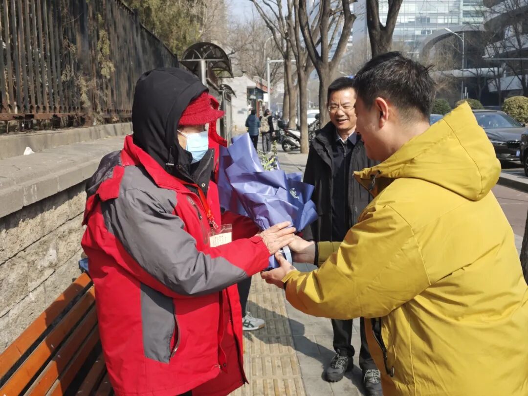 2025 年 3 月 7 日(星期五)下午,在第 115 个 "三八" 国际妇女节来临之际,朝阳门街道开展慰问活动。街道领导带队走访辖区女性代表,为她们送上鲜花和节日祝福,传递关怀与温暖。