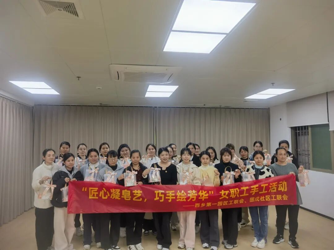 西乡第一园区工联会联合固戍社区工联会、深圳市尚为照明集团工会委员会,精心策划并举办了三场主题为“匠心凝皂艺,巧手绘芳华”的女职工手工皂制作活动,共吸引150名女职工积极参与。
