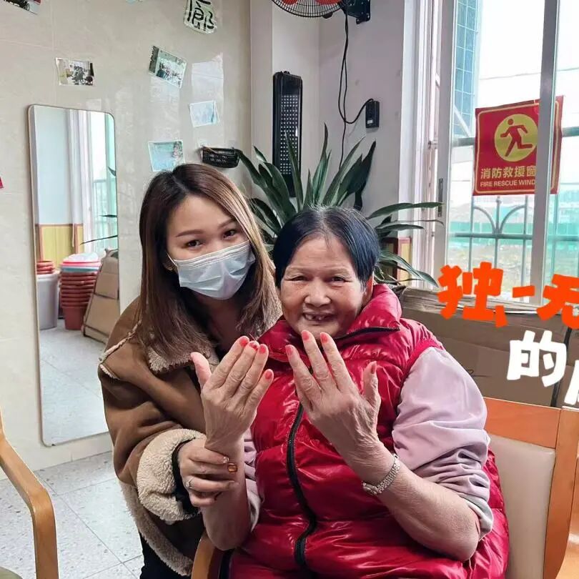工作人员用消毒棉片清洁好奶奶们的指甲后,将她们的指甲稍作修剪一翻,然后根据奶奶们的选色将色彩鲜艳的指甲油小心翼翼的涂在她们的指甲上,做上了美甲的她们宛如少女,黄婆婆和李婆婆迫不及待的和旁人展示刚做好的指甲,邀请工作人员帮她们拍照留念。三八女神节,从指尖的美丽开始,爱美,从不因年龄而褪色。就让她们永远做个时髦精致老奶奶吧!