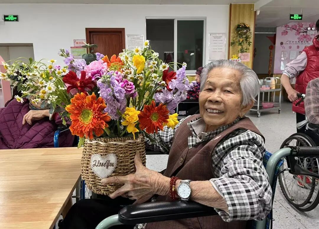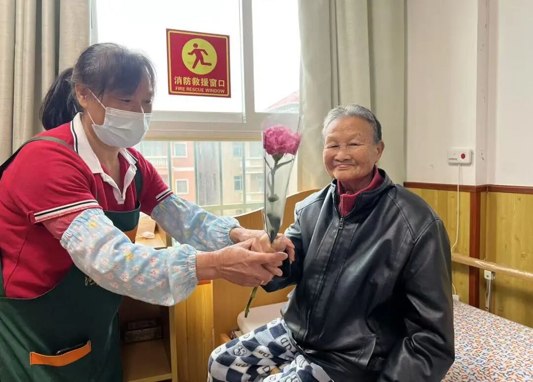 一朵芬芳的鲜花,一声温暖的问候,不仅饱含对奶奶们的爱,更承载着对她们的节日祝福,看到奶奶们脸上洋溢的幸福笑容,工作人员倍感欣慰。希望她们笑容常驻,开心健康的过好晚年生活。