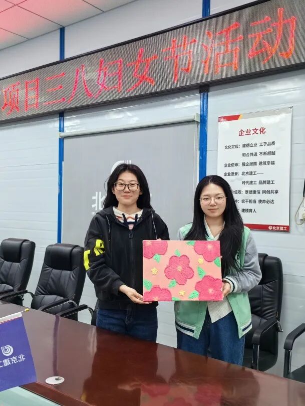 山西项目全体女职工汇聚一堂,共同学习了关于女性维护权益的法律知识,观看《我和我的祖国》这部献礼片,互相分享了观影感受。随后的绘制石英画环节,由两人组队共同完成一幅作品,通过调色、搅沙、用刮刀塑造生动的作品。大家纷纷表示,会把此次活动中展现的向上豪气和温暖和气转化为今后工作的决心、干劲和热情,为建设全方位高质量发展企业贡献她们的力量。