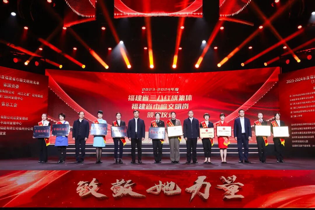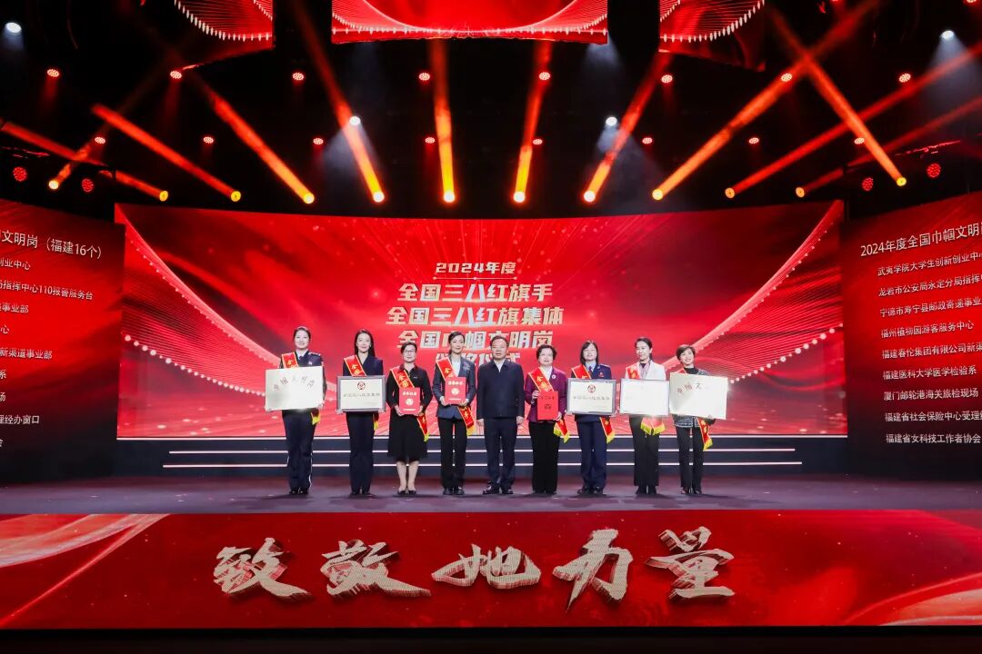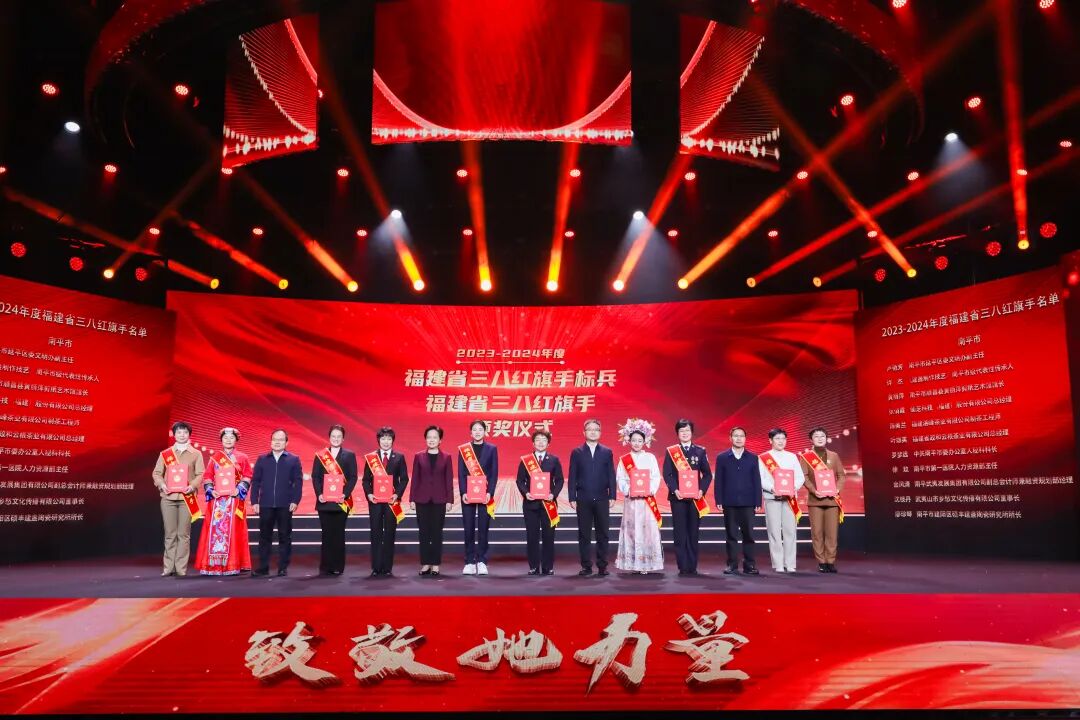 省委办公厅、省委宣传部、省委社工部、省委省直机关工委、省纪委监委驻省总工会机关纪检监察组、省总工会、省税务局、省广播影视集团等单位负责同志出席活动并为2023-2024年度福建省三八红旗手标兵、福建省三八红旗手、福建省三八红旗集体、福建省巾帼文明岗代表颁奖。
