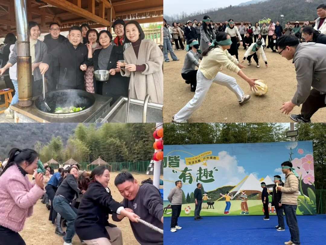 趣味运动会更是迸发出团队新的活力。拔河赛场上,呐喊声震天响,红绸在力量的角力中翩翩起舞;“你比我猜”环节中,大家脑洞大开,夸张的肢体语言引得阵阵欢笑;蒙眼抓大鹅挑战中,失去视觉依赖的同事们彼此搀扶、相互提醒,将信任托付给一声声指引;蒙眼吃香蕉项目则锻炼了团队的配合能力和平衡能力。春日的草坪化作欢乐的海洋,每个绽放的笑颜都是最美的节日勋章。
