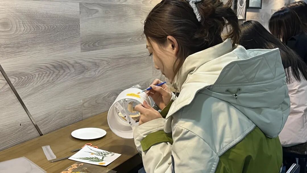 DIY 压花台灯活动同样人气爆棚。女同胞们将一朵朵娇艳的鲜花小心地压制在灯罩上,通过巧妙的排列组合,创造出了一个个美轮美奂的图案。随着灯光亮起,柔和的光线透过压花灯罩,将花朵的美丽轮廓映照在周围,仿佛为整个空间注入了生机与活力。