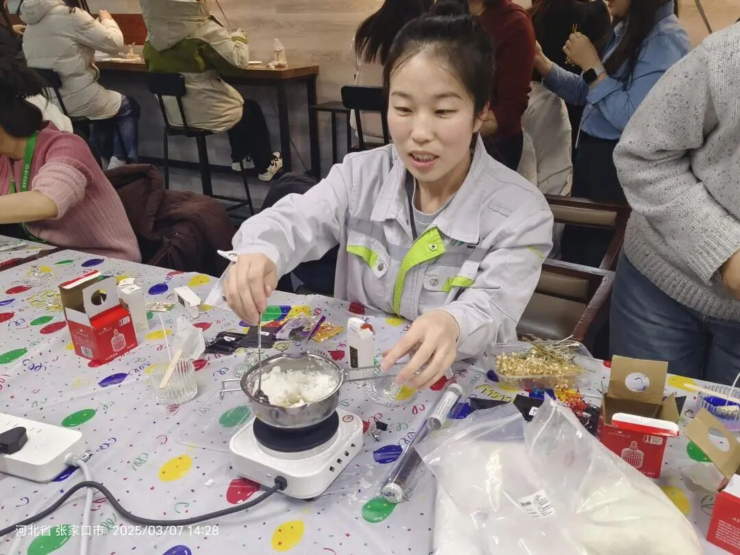 在 DIY 手工香薰区域,女同胞们充分发挥自己的创造力。现场摆放着各种天然香料和精致容器,大家根据自己的喜好,精心挑选香料,调配出独一无二的香味。在搅拌、装瓶的过程中,大家一边交流着制作心得,一边分享着生活中的小趣事。