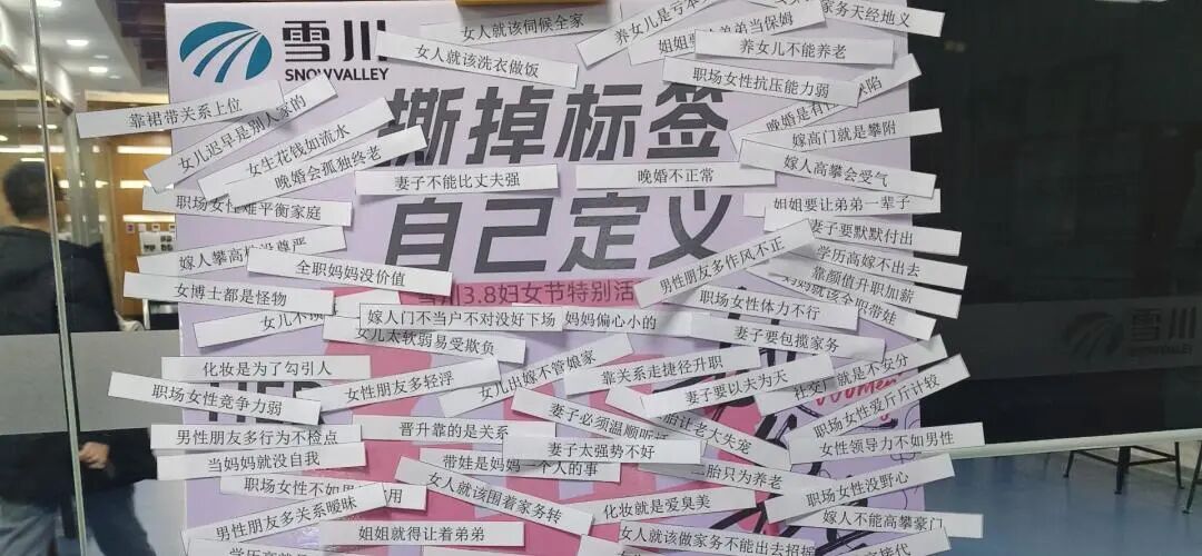 撕掉标签 定义自己--勇敢做自己:她们用行动向这些刻板印象说 “不”,勇敢地表达自己的观点:女性可以坚强独立,也可以感性温柔;既能在职场拼搏,也能经营好家庭;女性的价值和可能性,远不止于那些狭隘的定义。现场气氛热烈而激昂,每一次撕标签的动作,都像是在宣告女性对自我的重新定义,对自由的勇敢追求。