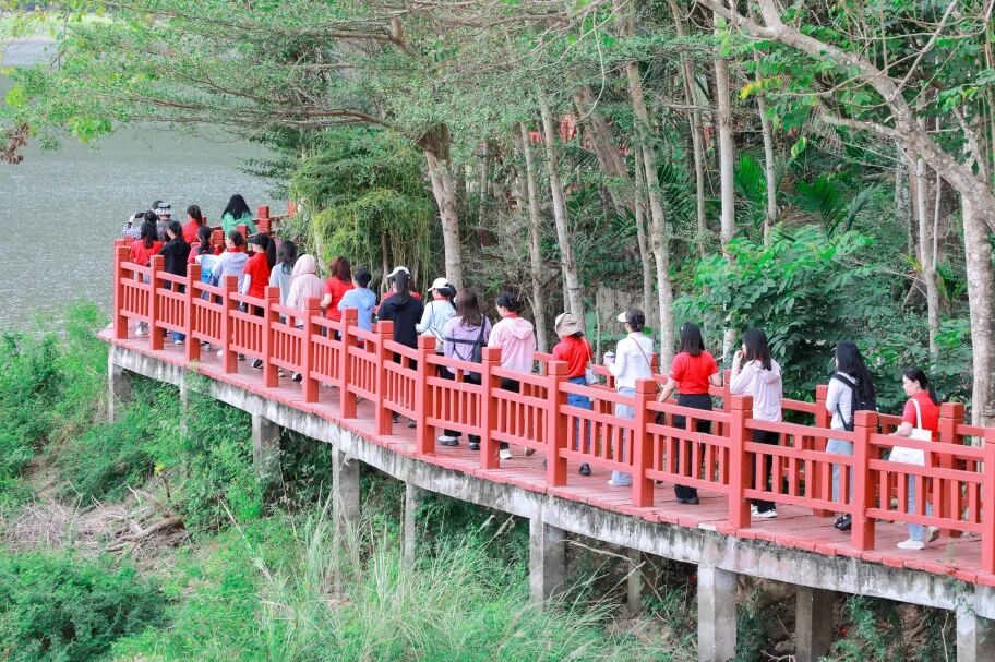 海南区域50余名女职工在三亚市吉阳区草蓬水库开启了一场别开生面的春日之旅。活动以“健康、活力、协作”为关键词,设置了瀑布溯溪·溯源三亚母亲河、栈道寻宝、稻田抓鱼等趣味环节。女职工们漫步山水间的栈道,感受春意盎然;跟着向导自热带雨林漫步而上,探寻天然瀑布,溯源三亚母亲河,大家全程团结互助、携手共进,充分展现了勇敢、坚韧、聪慧、乐观、善良的女性力量;走进稻田抓鱼、捞螺,体验小时候的快乐。大家在轻松愉悦的氛围中,定格属于“半边天”的专属记忆。