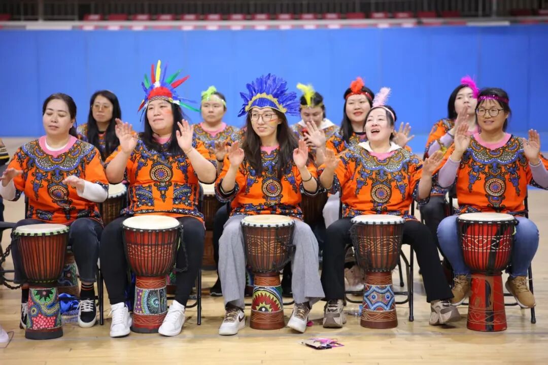 在各参赛队伍激情的风采展示、激烈的团队热身后,活动正式拉开帷幕。活动现场加油声、欢笑声此起彼伏,各参赛队伍团结一心、默契配合,现场啦啦队热情高涨,为参赛队伍加油鼓劲。热情奔放、活力四射的非洲鼓大型团体项目瞬间点燃现场气氛,将活动推向高潮。