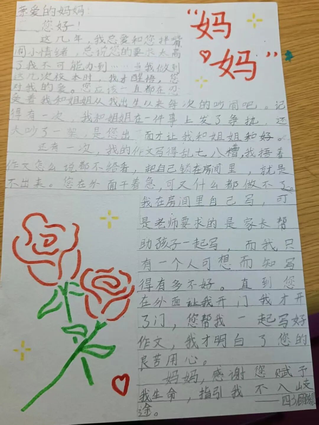 四年级的童娃们用文字表达着对妈妈的爱。一封封真挚的信件,倾诉着孩子们内心的感激之情,让妈妈们感受到了孩子们的成长与蜕变。