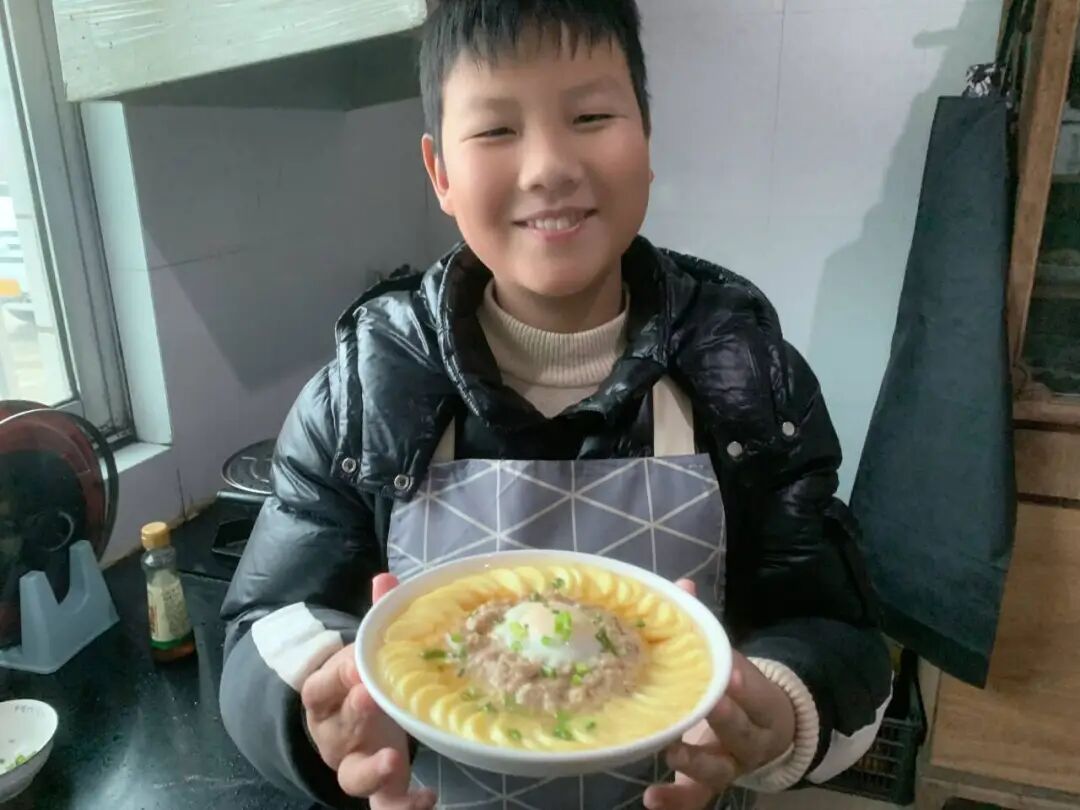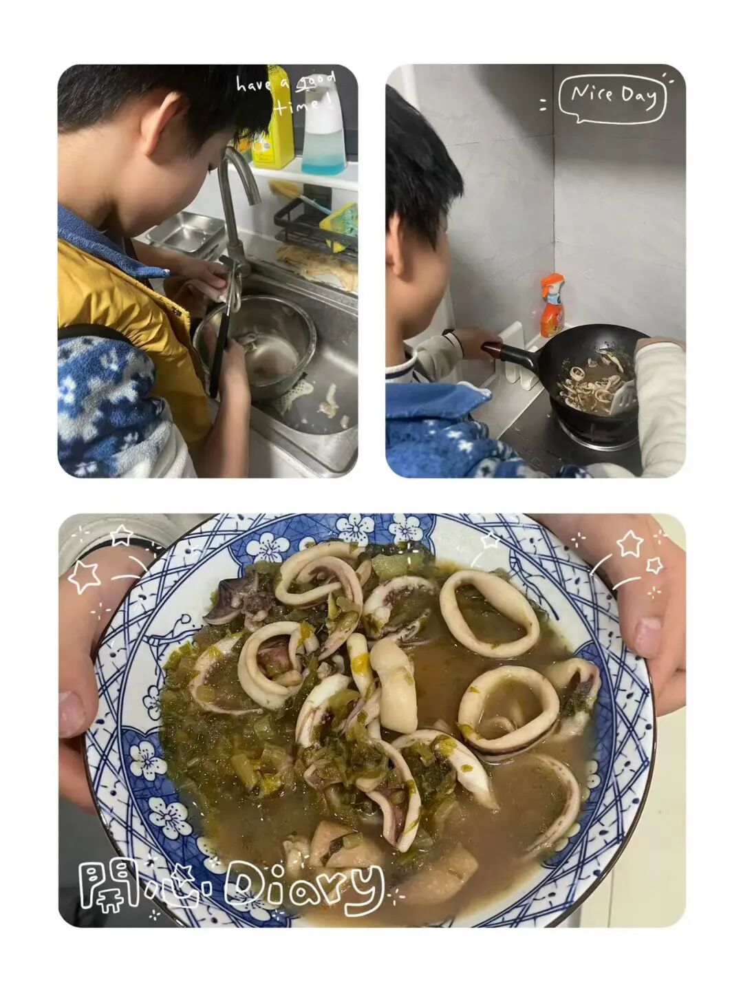 五年级的童娃们为妈妈们精心准备了一道道美食。瞧!每一道菜的背后都是孩子满满的用心。妈妈们在品尝美味的同时,也感受到了孩子们的孝心。