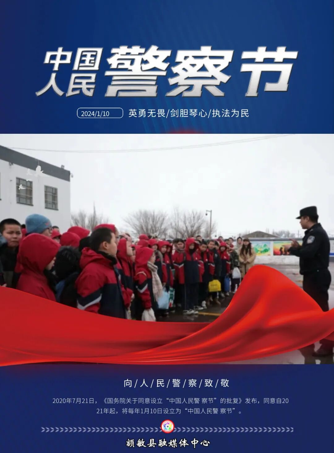 中国人民警察节是在国家层面专门为人民警察队伍设立的节日,2020年7月21日,《国务院关于同意设立“中国人民警察节”的批复》发布,同意自2021年起,每年1月10日设立为“中国人民警察节”。![]()